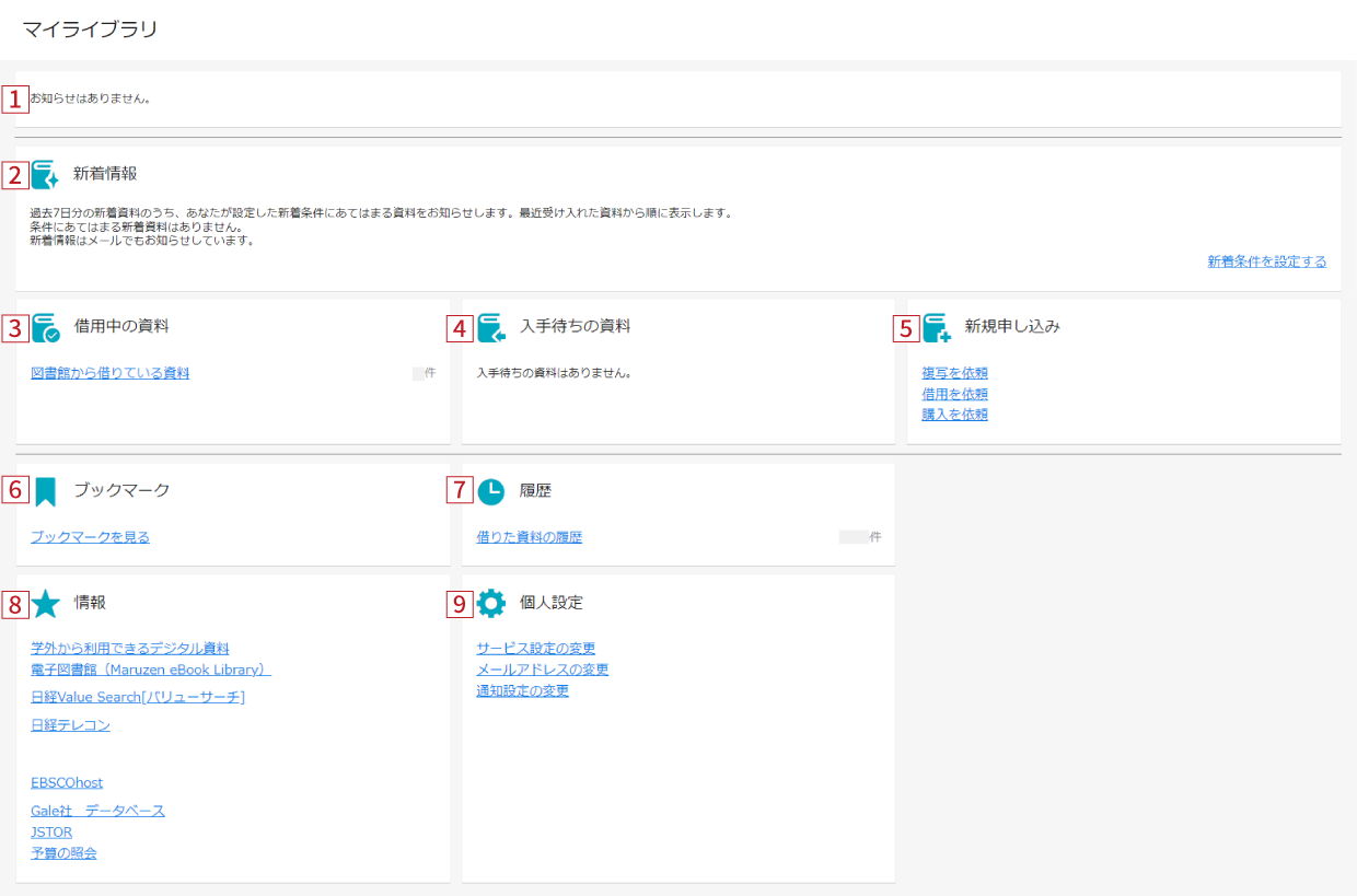 入手待ちの資料資料の予約状況などが表示されます。